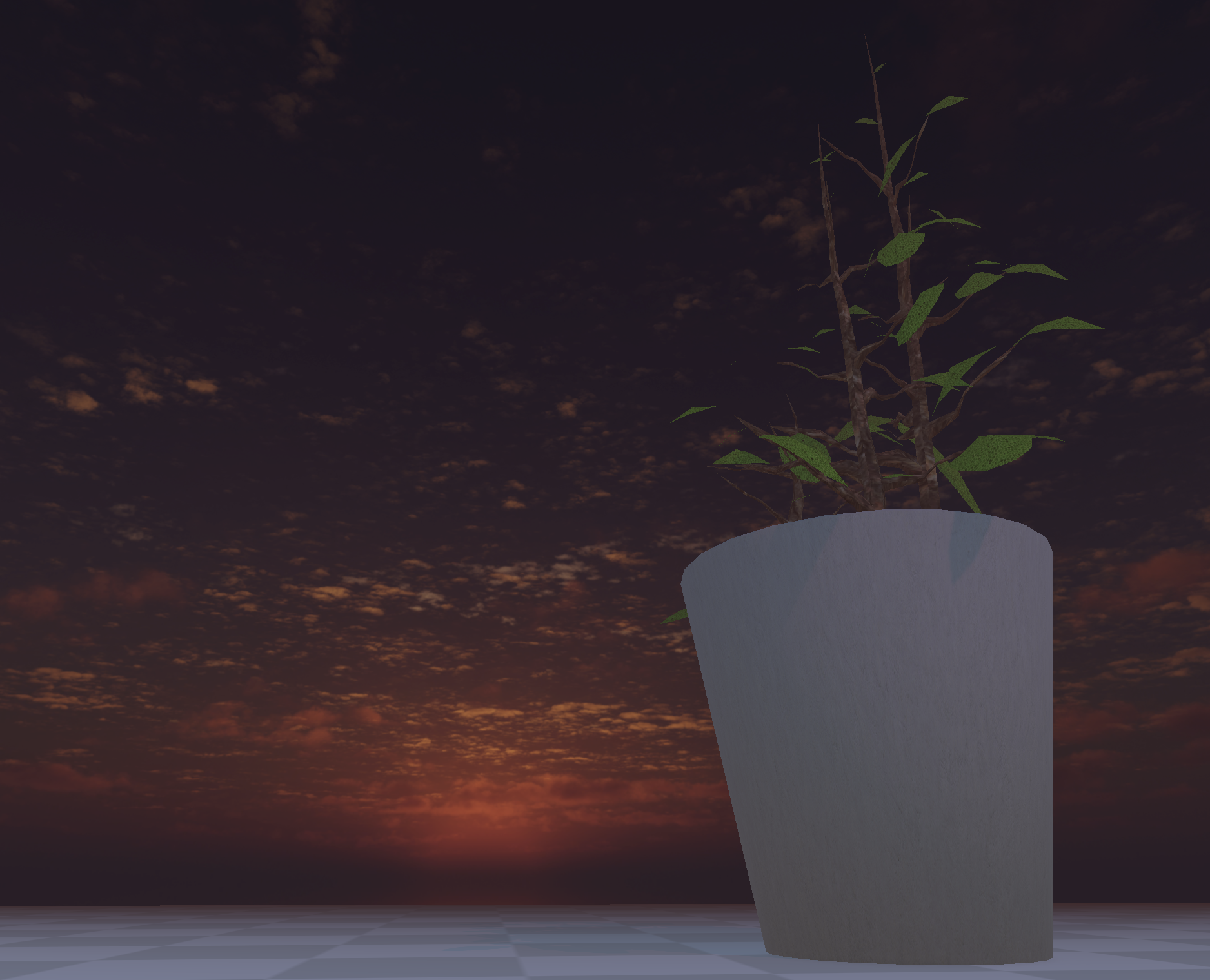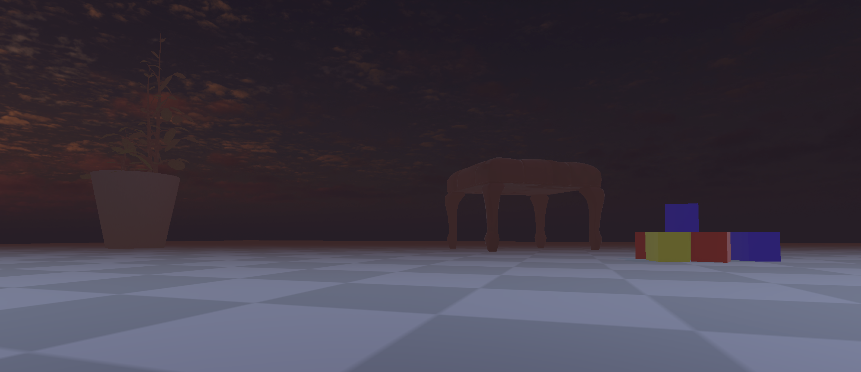 I like your red skybox! It really creates a sense of eerie. The checkerboard pattern looks like the transparent part represented by graphic design softwares, which makes the scene like a canvas which is still being edited by certain high-dimensional organism.